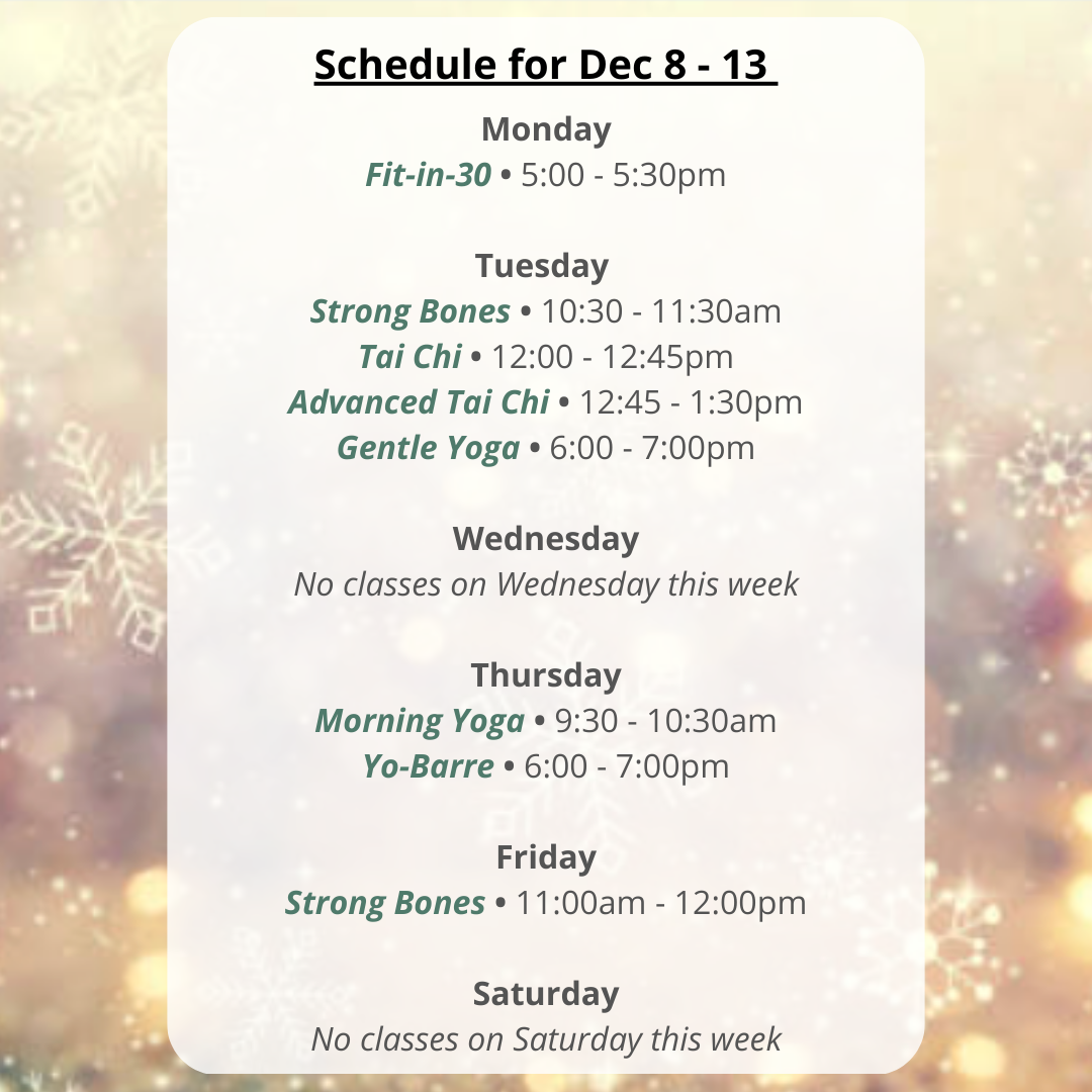 *We kindly request that for all exercise classes that require shoes, please bring clean footwear to change into - thank you!*
